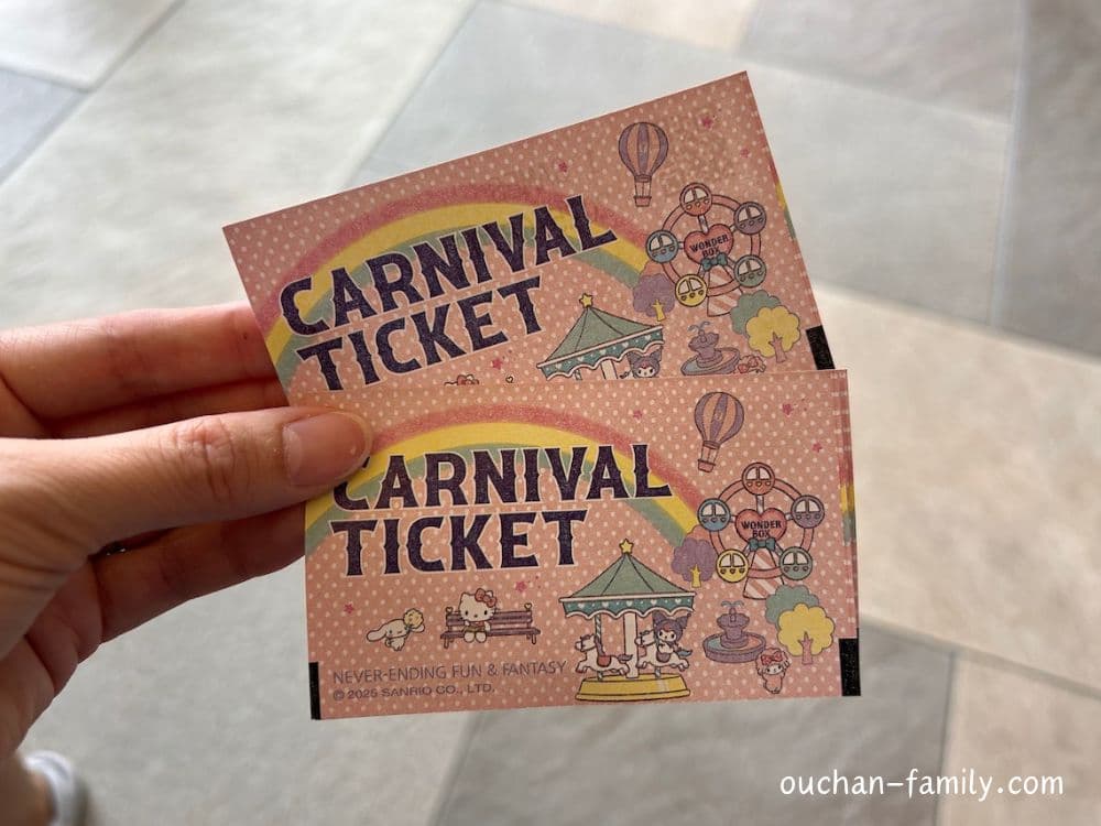 我が家の子どもたちは、カジノカードでチケットを購入した際にもらったカーニバルチケットを使って最初は遊びましたが、もっとしたいとのことで追加でチケットを購入。