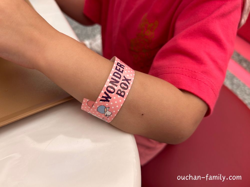 リストバンドが入場の際に必要になるので、外れないように腕につけてワンダーボックスへと向かいます。